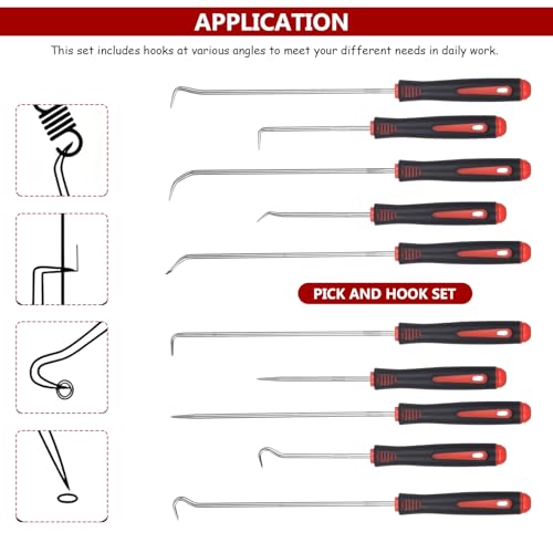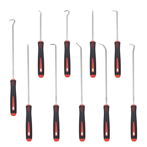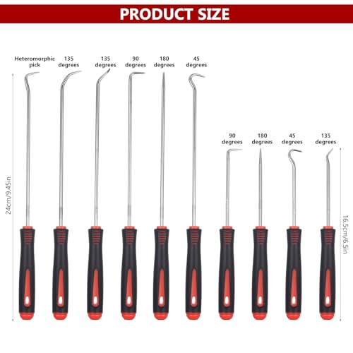 10 stuks precisie pick en haken set, 24 cm/16,5 cm universeel rood asafdichtring gereedschap haak gereedschap, auto demontage gereedschap, afdichting O-ring trekker gereedschap