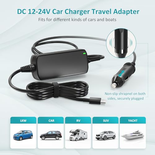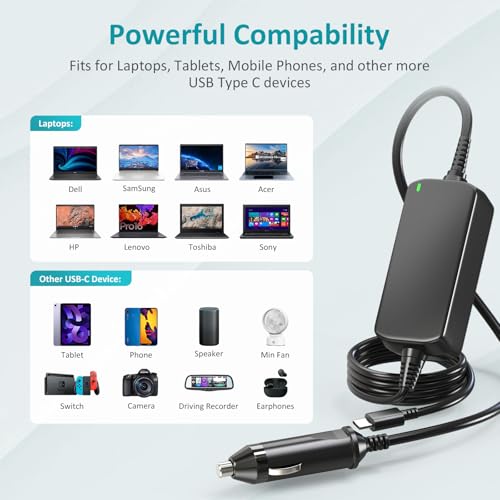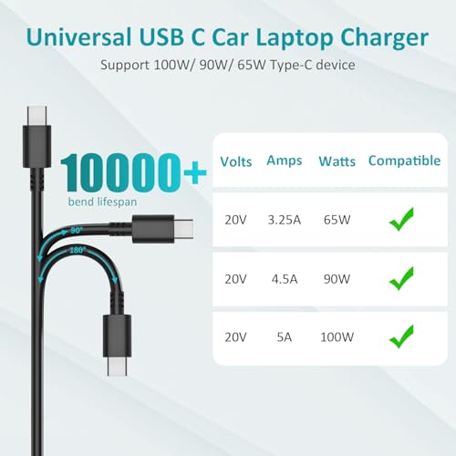 Basicvolt 100W 90W autolader laptop USB C, 12-24V autolader universele voeding voor Lenovo Thinkpad HP ASUS Dell Samsung Acer Chromebook oplaadkabel type C