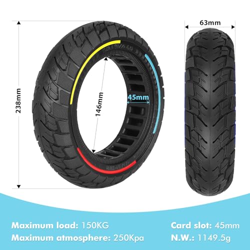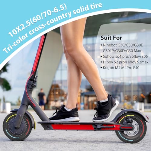 【Compatibiliteit en Maat】:Deze driekleurige massieve band is ontworpen voor 10 inch elektrische scooters, Geschikt voor Ninebot G30 /G30 /G30E /G30LP /G30D /G30 Max / Soflow so4 skilled/Soflow s06/Hiboy S2 skilled/Hiboy S2 Max, De buitendiameter van de massieve band is 238 mm (nine,37 inch), een binnendiameter van 146 mm (five,74 inch), een bandbreedte van 63 mm (2,48 inch) en een groefbreedte van 45 mm (1,77 inch), Deze band biedt een aanzienlijke verbetering in alle aspecten van de prestaties, Controleer voor aankoop of deze massieve band overeenkomt met de wielmaat van uw elektrische scooter.