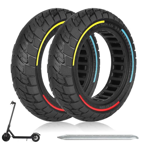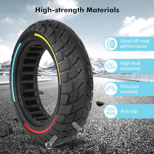 【Hoogwaardige materialen】:Onze 10×2,5-inch driekleurige massieve banden zijn gemaakt van natuurlijk rubber materiaal, waardoor oppompen, reparatie en onderhoud van de band niet meer nodig zijn. Het upgraden van de banden resulteert in een lager gewicht, grotere elasticiteit, verbeterde slijtvastheid en verouderingsbestendigheid, een langere levensduur en een betere rijervaring voor de elektrische scooter.