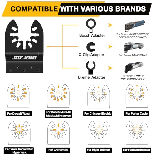 Universele Multitoolbladen: Deze oscillerende zaagbladen zijn compatibel met Dewalt DCS355N, DWE315 Corded, DCS355D1-GB, 20V MAX XR, DWE315KT-LX, DCS356NT, compatibel met Makita TM3000C, DTM50Z, DTM51Z, TM3010CK, compatibel met Inhell TC-MG 18 Li, TC-MG 12/1 Li, TE-MG 350 EQ, TC-MG 250 CE, compatibel met Milwaukee C12MT-0 M12, M18BMT-0 M18, MILM12FMT0, RYOBI RMT18-0 18V, PBLMT50B.