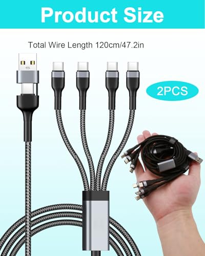 Specificaties: 2 stuks USB-C multi-oplaadkabel 4 in 2, 1,2 m universele multi-USB-kabel met 4 type C-aansluitingen, snel opladen, PD 40 W & QC 3,1 A multi-oplaadkabel voor iPhone 15, Samsung S24, Xiaomi
