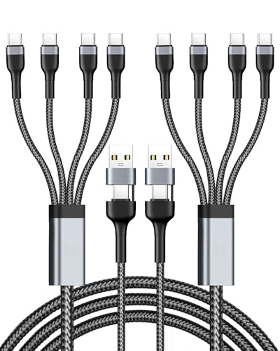 2 stuks USB-C multi-oplaadkabel 4 in 2, 1,2 m universele multi-USB-kabel met 4 type C-aansluitingen, snel opladen, PD 40 W & QC 3,1 A multi-oplaadkabel voor iPhone 15, Samsung S24, Xiaomi