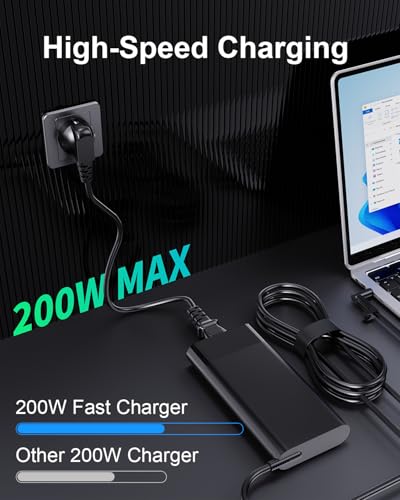 200W HP Laptoplader compatibel met HP Victus Gaming 15 16 Omen Gaming 15 17 Zbook 17 G5 G6 Fury G10 G9 Create G7 Studio G10 G9 TPN-DA10 L00818-850 L00895-003 ADP-200HB B W2F7 5AA Laptop Oplaadkabel