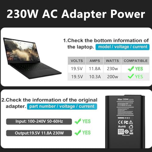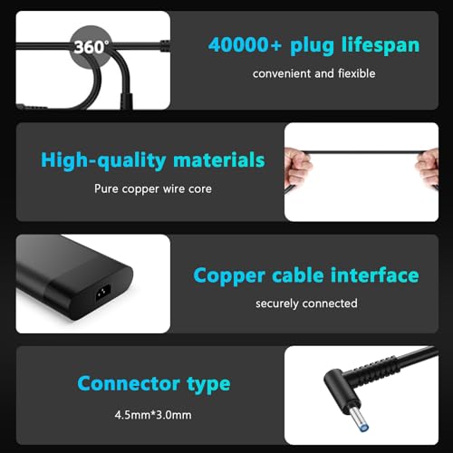 Specificaties: 230 W laptoplader voor HP. AC-ingangsspanning: 100 ~ 240 V 50 ~ 60Hz, DC-uitgang: 19,5 V ~ 11,8 A 230 W, stekkergrootte: 4,5 x 3,0 mm. Werkt met 19,5 V 10,3 A 200 W, 19,5 V 7,7 A 150 W, 19,5 V 6,9 A 135 W laptop)