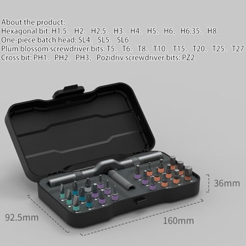 OVER HET PRODUCT: Zeskant bit: H1,5、H2、H2,5、H3、H4、H5、H6,H6,35、H8,Eendelige batchkop: SL4, SL5, SL6, Pruimenbloesem schroevendraaier bits: T5、T6、T8、T10、T15、T20、T25、T27,Cross bit: PH1、PH2、PH3,Pozidriv schroevendraaier bits: PZ2