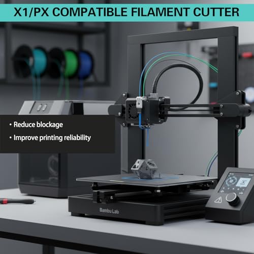 Compatibiliteit met Bambu Lab A1: de three-D-printerfilamentsnijder is speciaal ontwikkeld voor A1/A1 mini/ P1P / P1S / X1C en X1E-modellen. Hij zorgt voor een gelijkmatige filamenttoevoer en vermindert het risico op verstoppingen van de sproeier.