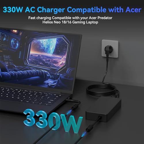 330W voedingsadapter oplader voor Acer Predator Helios 300 PH315-53 PH315-54 PH315-55 PH317-55 PH317-56, Helios 500 PH517-52, Helios 700 PH717-72, Helios 16 PH16-716, Helios 1 8 PH18-71, Neo 16, Neo 18. Compatibel met Acer Predator Triton 300 PT315-52 PT315-53, Triton 300 SE PT316-51S, Triton 500 PT515-52, Triton 500 SE PT516-51S PT516-52S, Triton 14 PT14-51