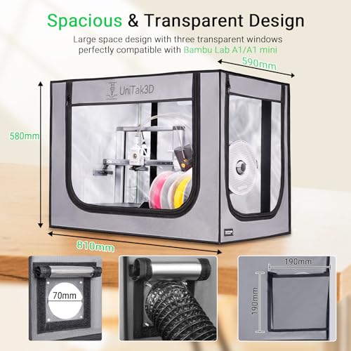 3D-printerbehuizing grijs (825x585x585 mm) biedt een beschermde en stofvrije omgeving voor je Bambu Lab A1 en A1 Mini Combo. Verbeter de printkwaliteit en verleng de levensduur van je 3D-printer met deze ruime en compatibele behuizing.