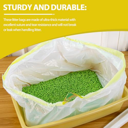 4 rollen XXL kattenbakzakken, 104 x 45 cm, witte kleur met geel trekkoord, katten, kattenbakzak, duurzame scheurvaste vuilniszakken voor zelfreinigende kattenbak (10 stuks/rol)
