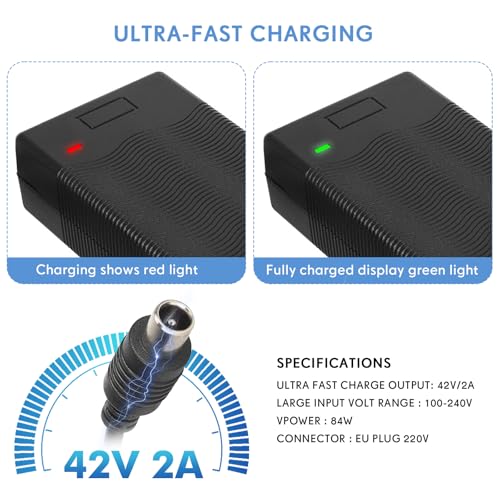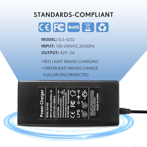 【Over the top Top of the range Provider】:Controleer de compatibiliteit van uw apparaat met de lader en converter voor het kopen van de 42V 2A lader, zorg ervoor dat er een stabiele verbinding tussen de lader en converter bij gebruik, als er een probleem met de lader, neem dan touch met ons op.