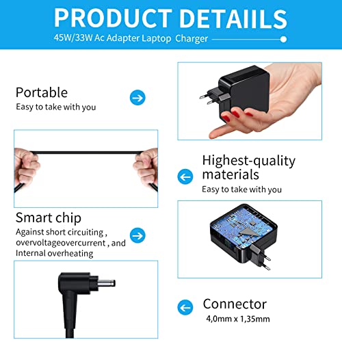 【Specificaties】Input: AC 100-240V 1,5A 50/60Hz; Output: 19V 2,37A 45W (compatibel met 19V 2,37A 45W en 19V 1,75A 33W); Plug grootte: 4,0mm x 1,35mm; Inhoud verpakking: Asus oplaadkabel. KLANTENSERVICE VAN HOGE KWALITEIT: 30 dagen restitutie zonder vragen, 1 jaar garantie en 24-uurs e-mailondersteuning. We vermelden alleen een subset van compatibele laptop modellen. (Controleer uw originele adapter)