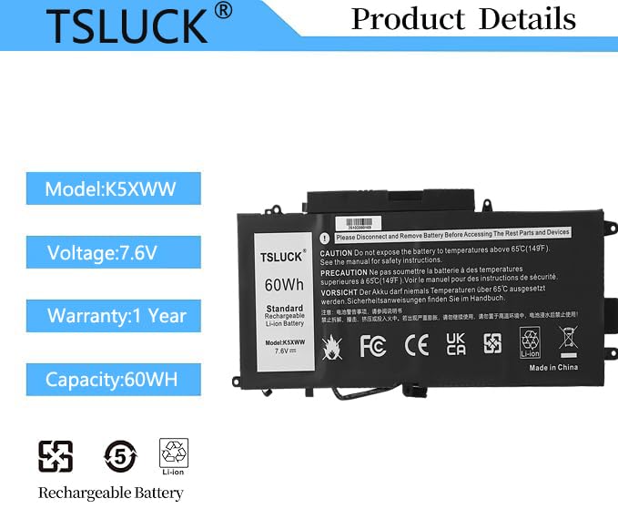 【Batterijspecificaties】Model: K5XWW; Kind: Oplaadbaar Lithium-Polymeer; Spanning: 7,6 V; Capaciteit: 60 Wh; Staat: one hundred% nieuw van de fabrikant.