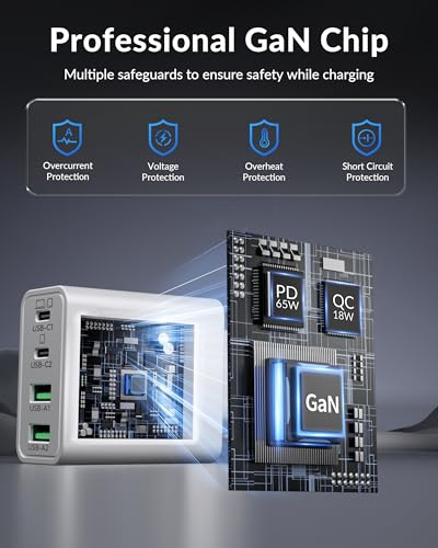 65 W 4-Poorts USB C Snellader GAN voor MacBook Pro 16/15/14/13 inch, MacBook Neo/Air M1/M2/M3/M4, iPhone 17e/17/Air/16/15 Pro MAX, iPad, Samsung, Pixel, PD Voeding Type C + Type A