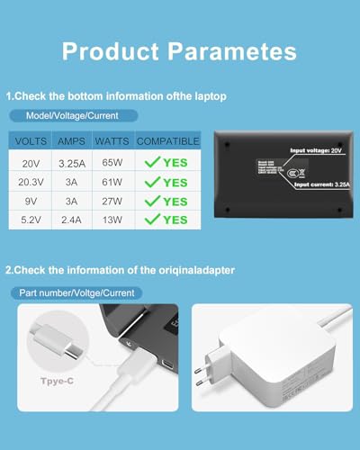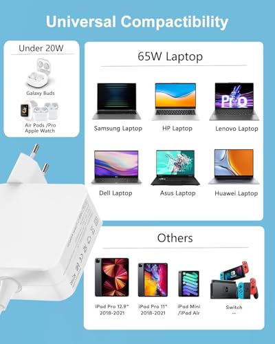 Specificaties: 65 W USB C Laptop Oplaadkabel oplader compatibel met Samsung Galaxy Book Pro 360 NP950QDB, Huawei Matebook D14 D15 D16, MacBook, Lenovo, HP, Dell, Acer, Asus, PD 3.0 type C laptopvoeding