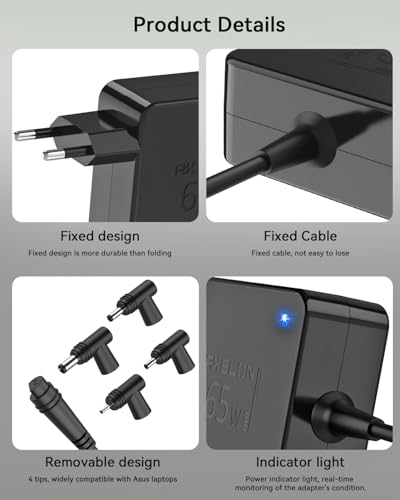 Specificaties: 65W 45W 33W Oplader voor Asus Laptop Vivobook, Zenbook, Chromebook ExpertBook Transformer Series, met Stroomindicator, 4 x Ronde connector