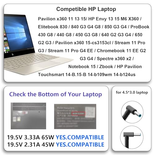 Compatibel HP notebookmodel: 65W laptopoplader is compatibel met Pavilion x360 11 13 15 / Envy 13 15 M6 X360 / Elitebook 830 / 840 G3 G4 G8 / 850 G3 G4 / ProBook 430 G8 / 430 G8 / 430 G8 / 430 G8 / 430 G8 / 44 40 cm. 8 / 450 G3 G8 / 640 G2 G3 G4 / 650 G2 G3 / Pavilion x360 15-cs3153cl / Move 11 Skilled G3 / Move 11 Skilled G4 EE / Chromebook 11 EE G2 G3 G4 / Spec. tre x36 0 x2 / Pocket e book 15 / Zbook / HP Pavilion Touchsmart 14-B.15-B 14-b109wm 14-b150us Sleekbook 15-b129wm 15-b150us 15-b153cl / Chromebook 14 Collection