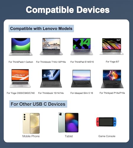 Specificaties: 65W USB C voor Lenovo Oplaadkabel Thinkpad x1 Carbon T14 T15 L14 T480 T490 T580 T590 E480 E490 E580 E585 E590 E595 Yoga C740 720 730 910 720-13ikb 730-13ikb Laptop Oplader Voeding
