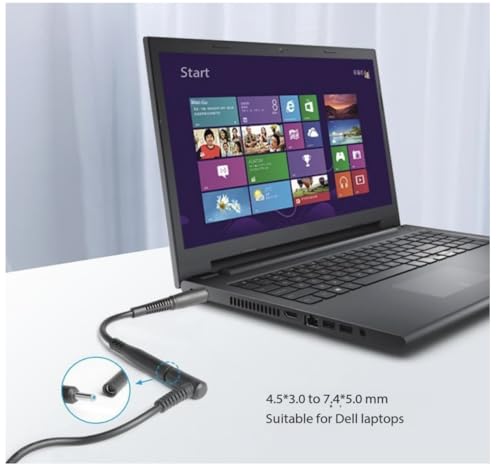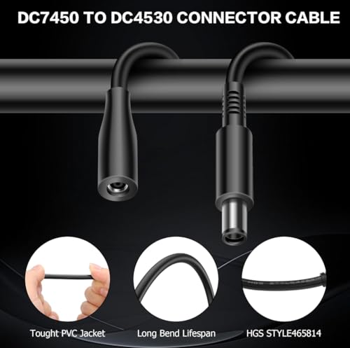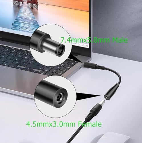 Ontwerpcompatibiliteit: de converterkabel is ontworpen om een 7,4 mm aansluiting om te zetten in een 4,5 mm ronde punt met pen, speciaal voor Dell laptopladers van 45 W, 65 W en 130 W modellen zoals Dell XPS 13 (9360, 9433, 933, 9350) en Inspiron-serie (14 5458, 5458, 5458, 5458, 455 cm. 451, 3451, 3458, 7437 en 15 5558, 5555, 5551, 3558, 3551, 3451).
