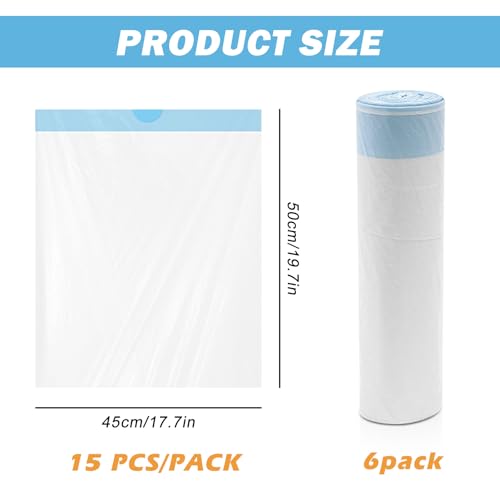Specificaties: 90 Stuks Vuilniszakken Met Draaggreep: Zelfreinigende Kattentoilet, 45 x 50 cm, Duurzame Zakken Met Trekkoord, 6 Rollen