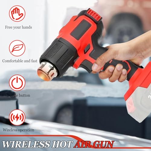 Compatibel met Makita 18V accu’s: De draadloze heteluchtpistool is compatibel met Makita 18V accu’s (BL1830, BL1830B, BL1840, BL1840B, BL1850, BL1850B, BL1860B). Superb voor gebruik buitenshuis of op plaatsen zonder stroomvoorziening. (Opmerking: batterij niet bij de levering inbegrepen. Niet compatibel met accu’s uit de G-serie.)