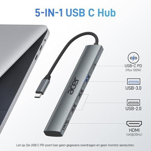 acer USB C Hub 5 in 1, draagbare 4K HDMI-adapter PD 100W, 3x USB A-datapoort, USB C naar HDMI-adapter compatibel met Acer Laptop, Chromebook, Surface, Galaxybook, MacBook Pro/Air, iPad Pro/Air