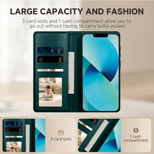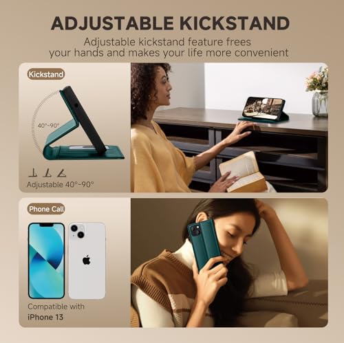 iPhone 13 hoesje leren premium met kaarthouder RFID bescherming en standaard, AIMOYU beschermhoes