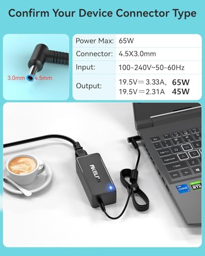 AKELON 65W Laptop pc Oplader voor HP Uitgang Max: 19,5V 3,33A 65W (okaycompatibel met 19,5V 2,31A 45W) Ingangsspanning bereik: a hundred and ten-240V Connector grootte: 4,5 * 3,0 mm vervanging voor HP Laptop pc Oplader