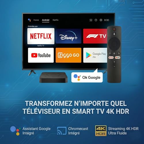 Android TV Box 4K met Chromecast, Smart TV Streaming Box, WiFi & Bluetooth, Google Assistant, Ondersteuning voor Netflix, Multimedia-speler, IPTV-geschikt