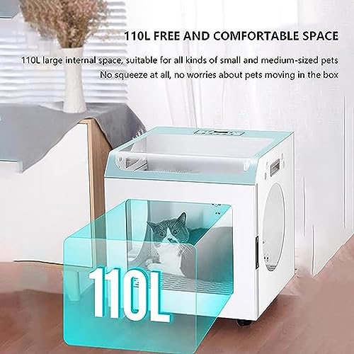 Met een royale interne ruimte van 110 liter biedt deze box voldoende ruimte voor kleine tot middelgrote huisdieren om vrij te bewegen zonder krap te voelen, wat een stressvrije en comfortabele droogervaring biedt.