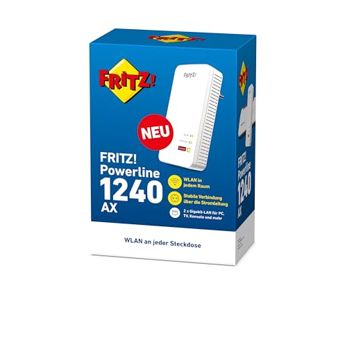 AVM Fritz!Powerline 1240 AX WLAN-set (Gigabit Powerline met Wi-Fi 6, WLAN-access point, ideaal voor media-streaming, HD-video’s, internet-TV, 1.200 Mbit/s, Duitstalige versie)