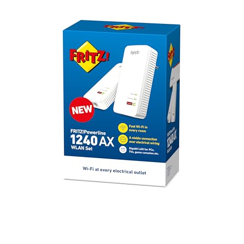AVM FRITZ!Powerline 1240 AX WLAN Set (Gigabit-Powerline met Wi-Fi 6, WLAN-toegangspunt, ideaal voor media-streaming, HD-video’s, internet-tv, 1200 MBit/s, internationale versie)