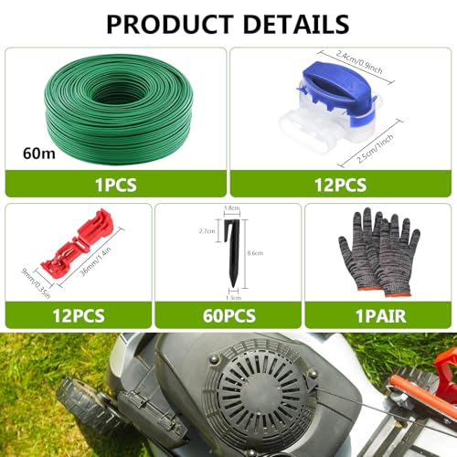 【Verpakkingsinhoud】De begrenzingsdraad robotmaaierset bevat 60 m begrenzingskabel, 60 grondpennen, 12 kabelaansluitingen, 12 aansluitklemmen en een paar handschoenen. Een uitgebreide grasmaaierkabelset voor het definiëren, uitbreiden of aanpassen van de te maaien gebieden.
