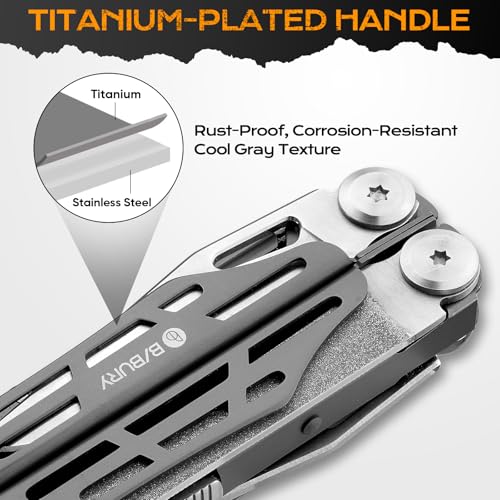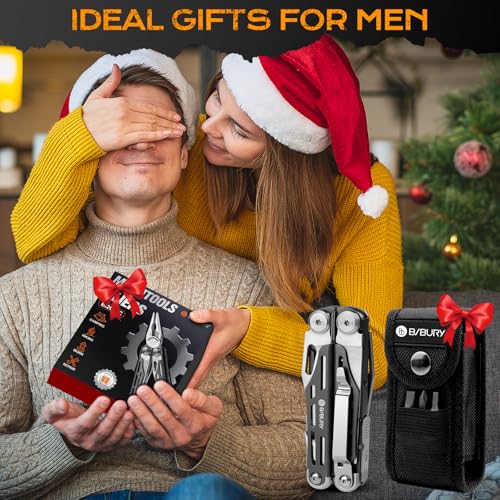 BIBURY Multitool, 19-in-1 roestvrij staal, multitool met tang, klapmes, schaar, schroevendraaier, cadeau voor mannen, opvouwbaar multifunctioneel gereedschap voor outdoor, camping, repareren