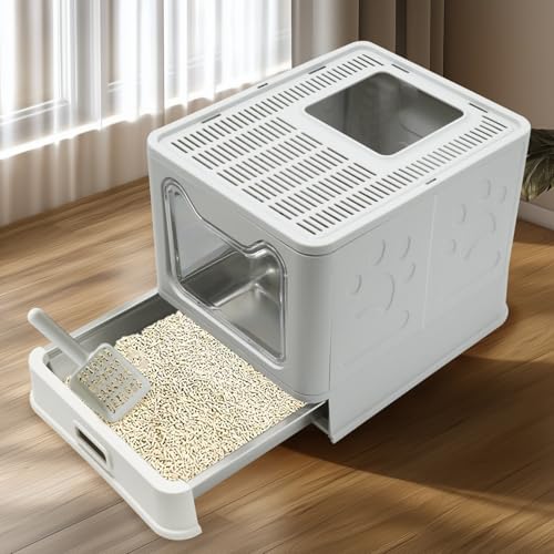 【XXL kattenbak met lade】- Kattenbak met deksel + praktisch ladebodem, meegeleverde schep! Vervang het strooisel in de kattenbakbox bliksemsnel – geen tillen nodig, just right voor ruimtebesparende verwijdering