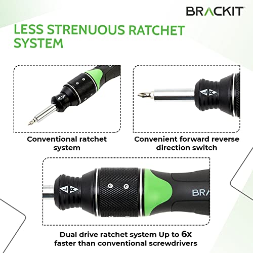 Specificaties: Brackit Premium 2-in-1 ratel en schroevendraaier met bits, 32-delige set, dubbele aandrijving, 6 x sneller dan gewone, handig en efficiënt voor doe-het-zelf- en installatietaken