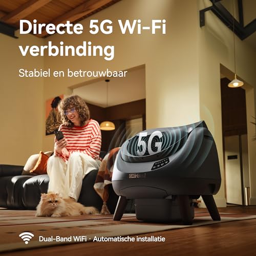 【Makkelijk App-Beheer & 5 GHz Wi-Fi】Bedien je kattenbak eenvoudig op afstand via de moderne app. Dankzij dualband Wi-Fi (2,4G/5GHz) geniet je altijd van een stabiele verbinding, zonder gedoe met handmatig schakelen. Maken van verbinding was nog nooit zo simpel.