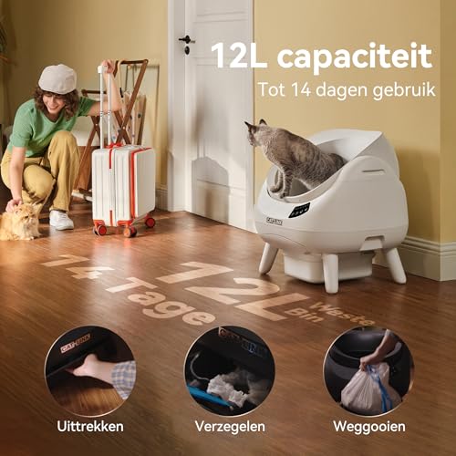 【XL Ontwerp & Veiligheid voor Elke Kat】Deze XL kattenbak met een further brede ingang van 45 cm out of place het probleem op van krappe openingen en is geschikt voor katten van 1,5 tot 10 kg – okayvery good als kattenbak voor grote katten. Het open ontwerp aan de bovenkant sluit aan bij de natuurlijke instincten van je kat. Dankzij infrarood- en gewichtssensoren stopt de zelfreinigende kattentoilette onmiddellijk bij touch – veiligheid gegarandeerd.