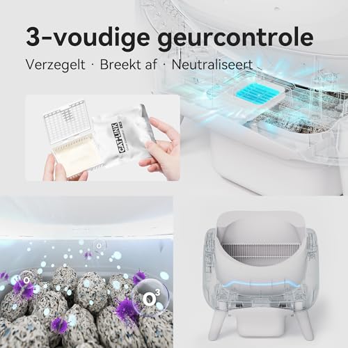 【Effectieve Geurbeheersing & Minimale Schoonmaak】Het drievoudige geurbeheersingssysteem zorgt voor een frisse en hygiënische omgeving in huis. Laat de zelfreinigende kattenbak het werk voor je doen en verminder de schoonmaaktijd tot een minimum.