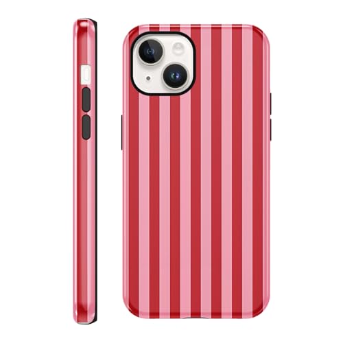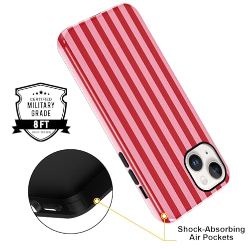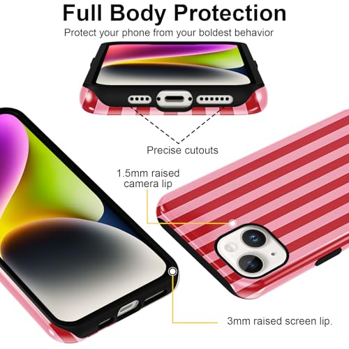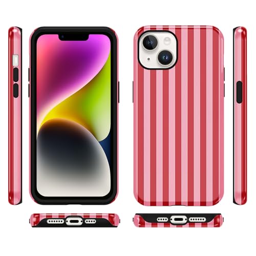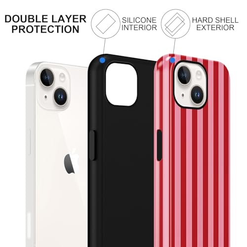 iPhone 14/13 6,1 inch hoesje met gestreept patroon en 2-in-1 siliconen bumper beschermt je telefoon tegen stoten en krassen. Dit schokbestendige, rode hoesje combineert een stevige buitenlaag met een zachte binnenlaag voor optimale bescherming en een stijlvolle uitstraling.