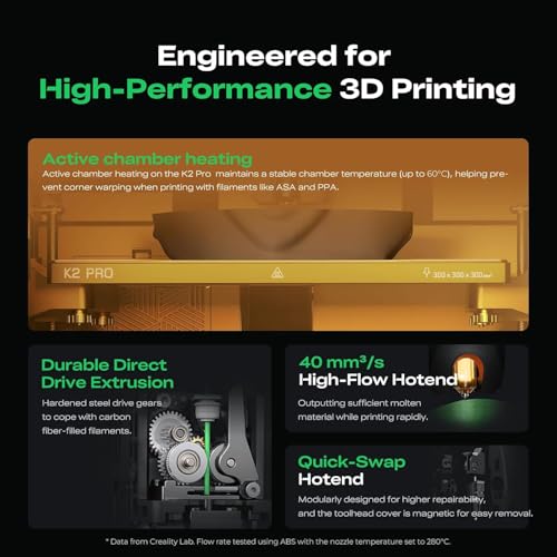 De Creality K2 Pro Combo 3D-printer biedt multicolor printen met maximaal 16 kleuren dankzij het CFS Smart Filament System. Met een bouwvolume van 300×300×300 mm, ultrasnelle prints tot 600 mm/s en duale AI-camera’s voor foutdetectie, levert deze printer nauwkeurige, efficiënte resultaten.