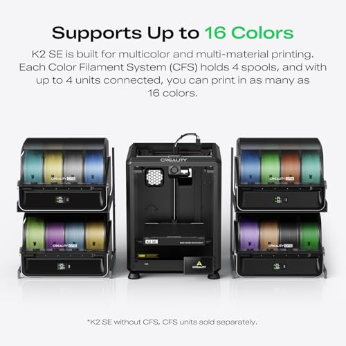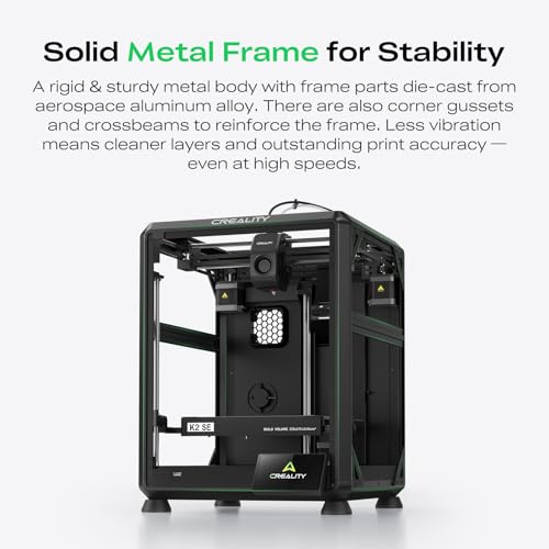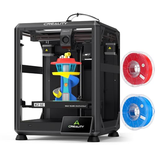 De Creality K2 SE 3D-printer combineert een metalen frame met een CoreXY-systeem voor snelle en nauwkeurige prints tot 500 mm/s. Met automatische bednivellering, vibratiesensor en compatibiliteit voor multicolor-printen is hij geschikt voor gedetailleerde, stabiele en veelzijdige 3D-afdrukken.