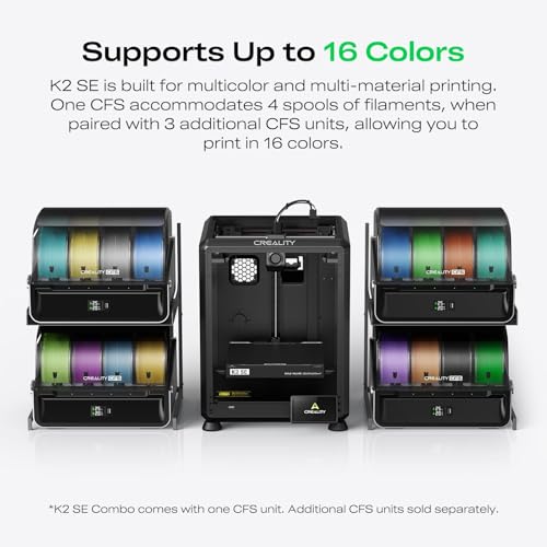 Specificaties: Creality K2 SE Combo 3D-printer multicolor CFS 16 kleuren, 500 mm/s snel, solide aluminium frame, 220x215x245 mm