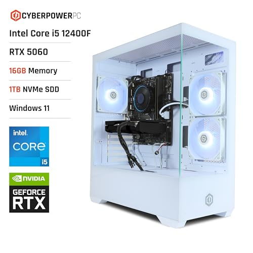 CyberPowerPC Wyvern Gaming PC – Intel Core i5-12400F, Nvidia RTX 5060 8GB, 16GB RAM, 1TB NVMe SSD, 650W 80+ PSU, Wi-Fi, Windows 11, Prism Panoramic RGB White