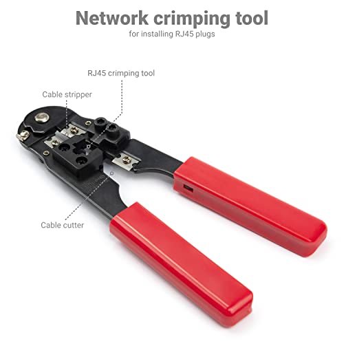 – 1x modulaire krimptang (RJ45 + RJ12) in zwart/rood