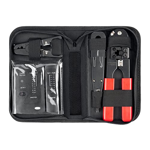 Specificaties: deleyCON Netwerkgereedschapset 4-delig met Tas LSA-Ponsgereedschap Striptang Kabeltester Krimptang voor IT-Computernetwerk LAN CAT Tool RJ11 RJ12 RJ45