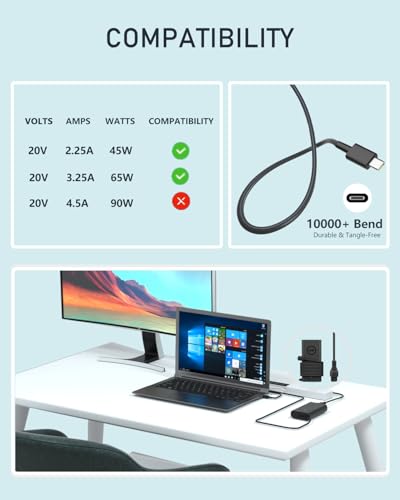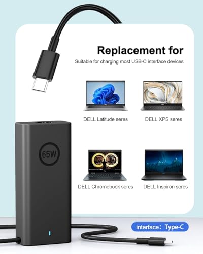 Appropriate with Dell USB-C charger for Latitude 5000 5420 5520 5400 5290 5320 7420 7410 7430 7480 7490 7320 7330 2in 1 7340 7530 7640 5285 2-in-1 9330 9420 9420 2in1 9430; Dell P/N: LA65NM170, HA65NM170, DA65NM170, HA65NM190, DA65NM190, HKA65NM200, LA65NM190, DA45NM210, LA45NM210, HA45NM210, 0WMDHR, 0VT148, 0CJG9W, 0T3JDJ, 0723JG, 723JG, 0GJJYR, 0FTTTJ, 02WDR5, 0T8W34, 02YK0F, 0M1WCF, 0JYJNW, 09K9GP, 0M5GT1, 0T59CD.