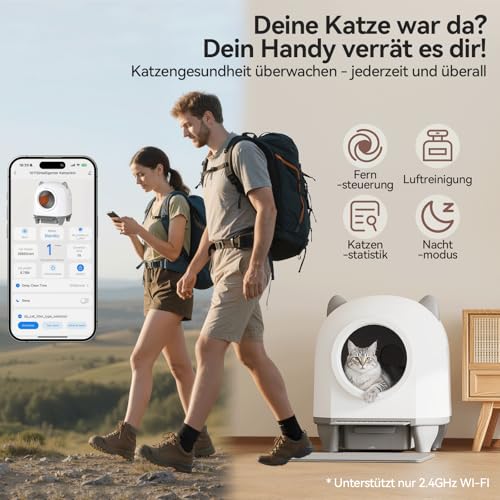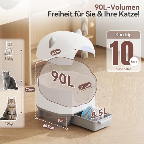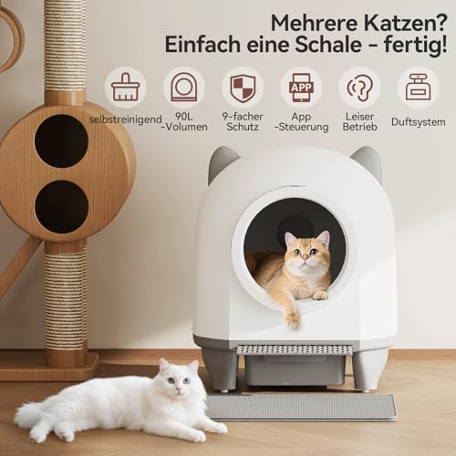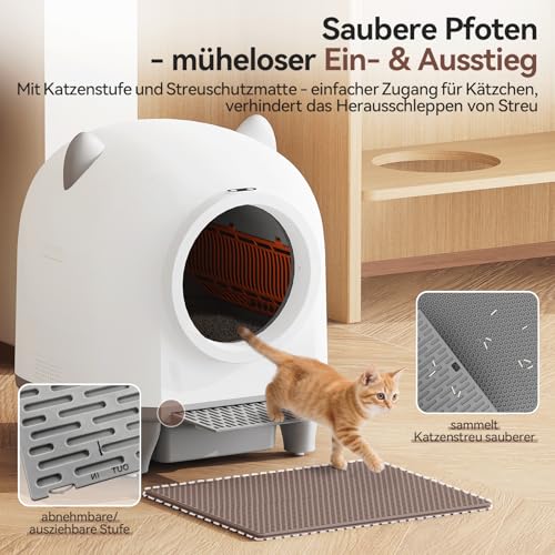 Specificaties: Devoko Kattenbak, zelfreinigend, schattige kattenoren, automatische kattenbak XXL, afstandsbediening, grote ruimte, veiligheid, anti-geur, 90 liter, elektrische kattenbak voor meerdere katten