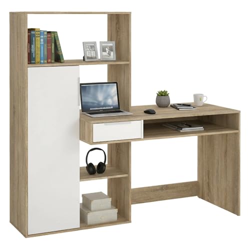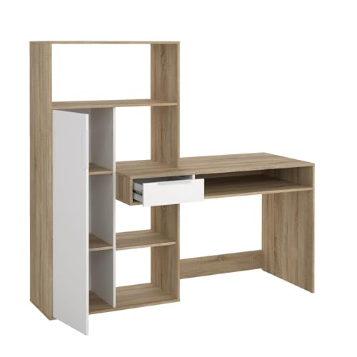 Dmora Multifunctioneel bureau met boekenkast, werktafel, perfect voor kinderkamer of modern kantoor, 163 x 60 x 155 cm, wit en eiken