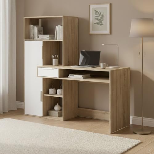 Plaats de eerste recensie voor “Dmora Multifunctioneel bureau met boekenkast, werktafel, perfect voor kinderkamer of modern kantoor, 163 x 60 x 155 cm, wit en eiken”